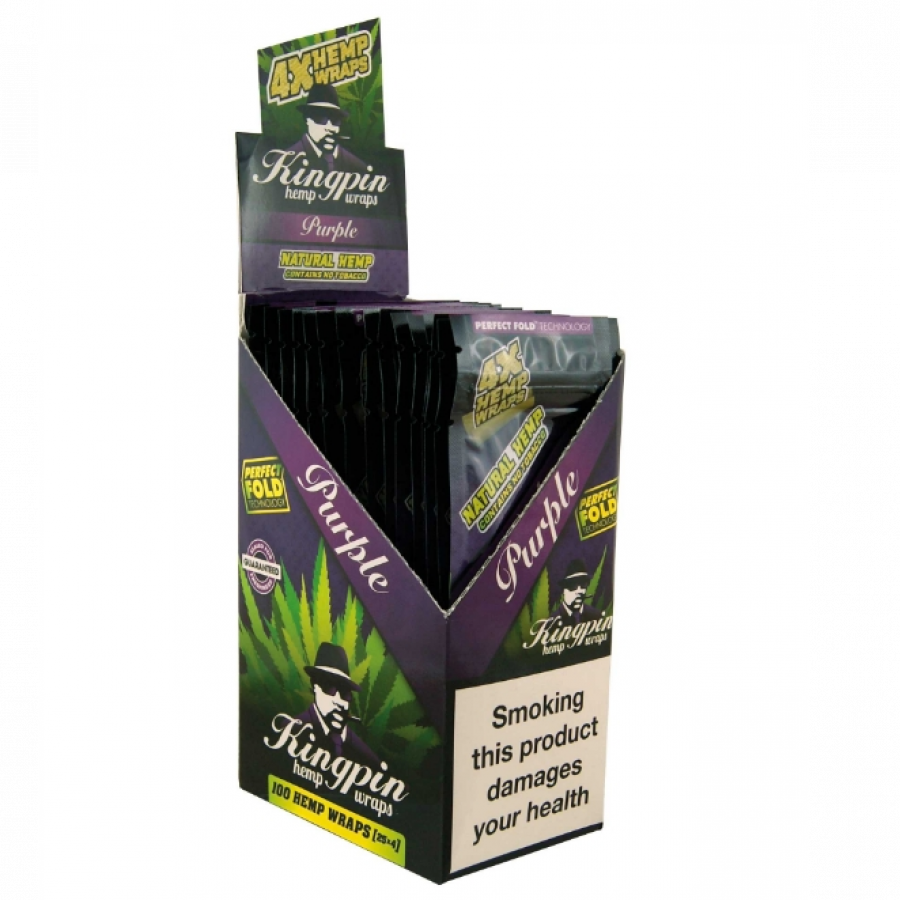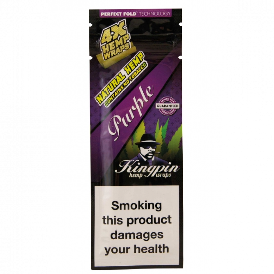 Price is for one pack. 4 wraps per pack.Wrap Size: Length 105mm.The Kingpin Hemp Wraps are perfect for the blunt connoisseur who really wants to taste the flavor profiles of what they’re smoking. Kingpin wraps have a locked, resealable package that traps moisture, making for the perfect blunts.Made from natural toasted hemp, these wraps truly are the king!