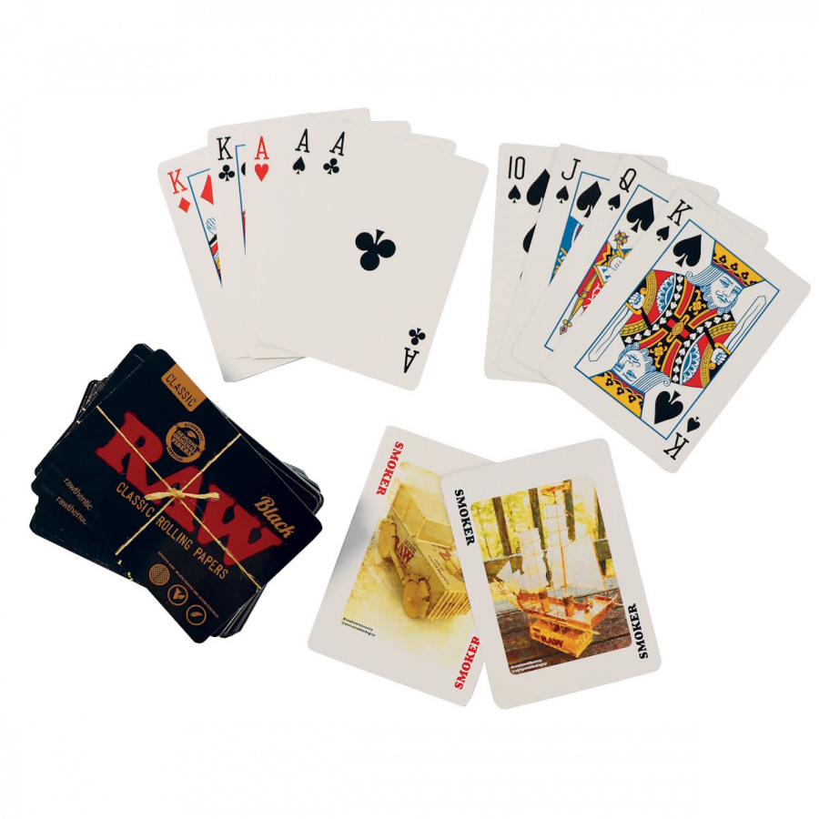 Up for a quick game of cards! Raw Black Rolling Playing Cards have the standard 52 cards, comes delivered in an outer case and has 'two smoker jokers's. All the playing cards have been gloss laminated as well as the outer packaging, easy to wipe down each card as well.Show off your new RAW Playing Cards these cards will delight and entertain even the most discerning smoker. Choose from RAW Black or the Raw Classic playing cards.- Raw Black Cards- Standard 52 Card Deck- Gloss Laminated- Two Smoker Jokers-Size: 9.1x6.6x2.0CM