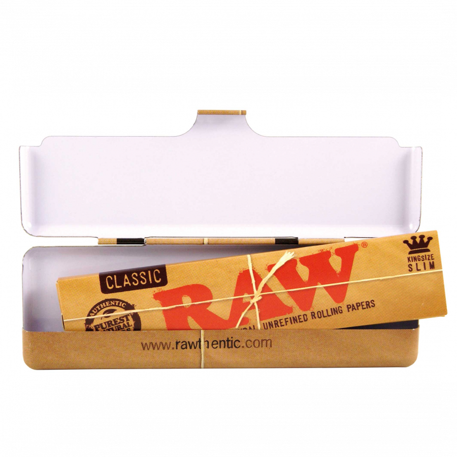 Take care of your accessories with the professional RAW Classic Tin case – a metal guardian of quality and functionality for those who value the impeccable condition of their rolling papers in any situation!Precise product specifications:– Dedicated case designed specifically for King Size rolling papers– Dimensions: 11.5 x 4 x 1.0 cm– High-grade metal construction– Classic, recognizable RAW color scheme– Practical top closure system– Full protection against crushing and damage– Compact dimensions ideal for mobile transport– Elegant, minimalist design– Durability and resistance to mechanical damage